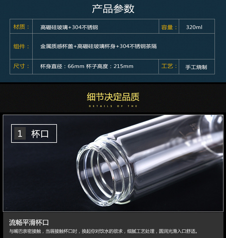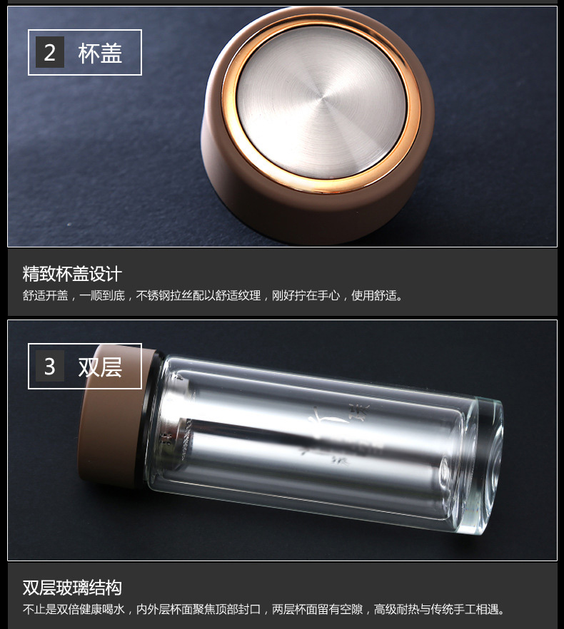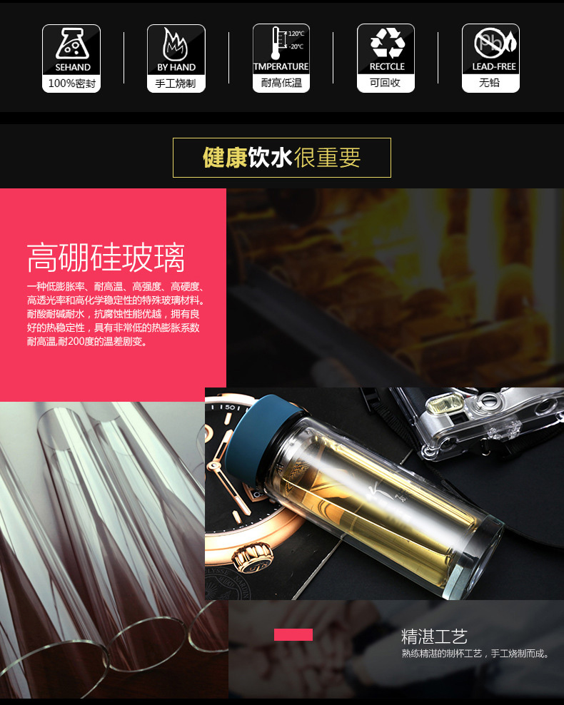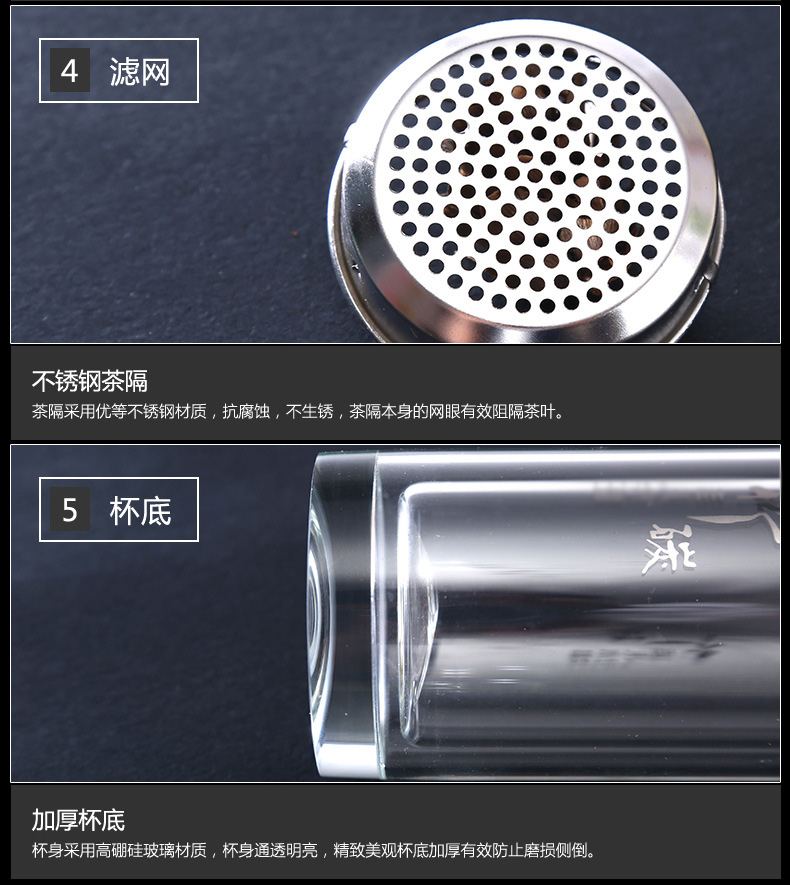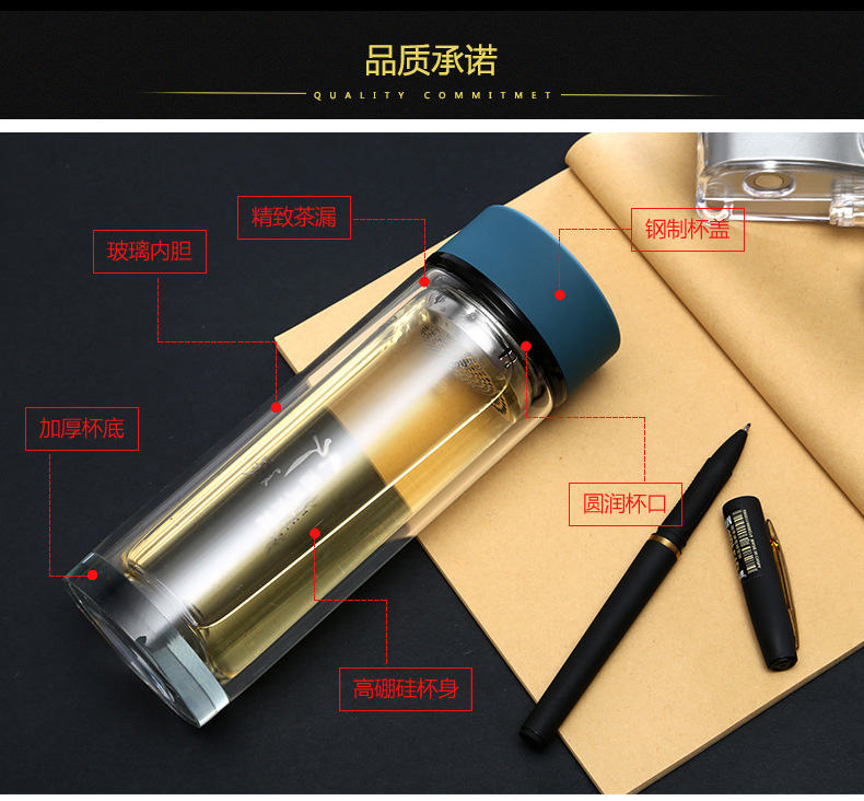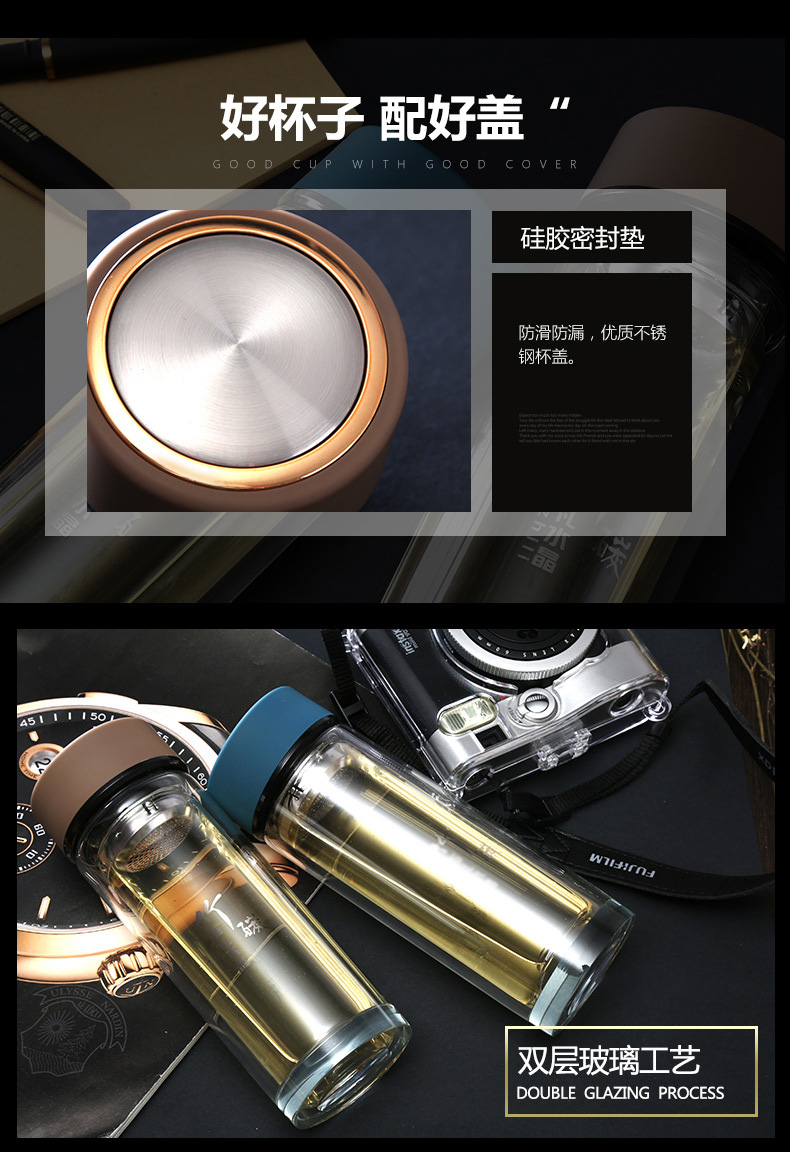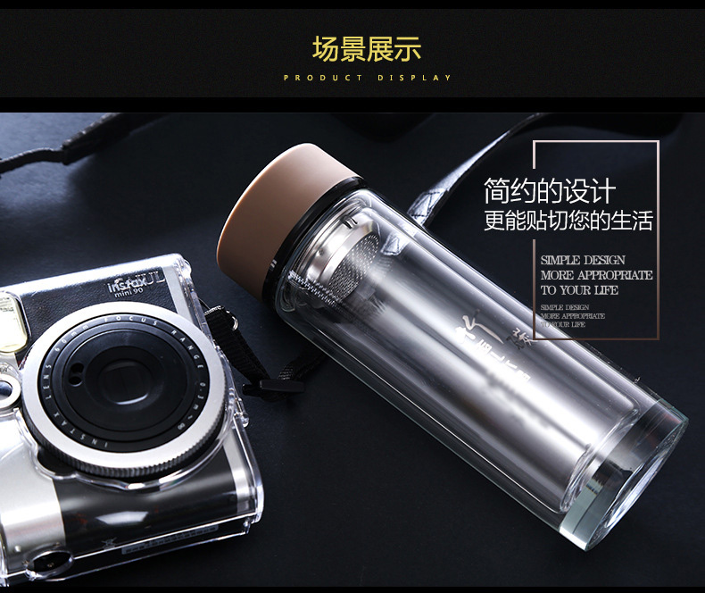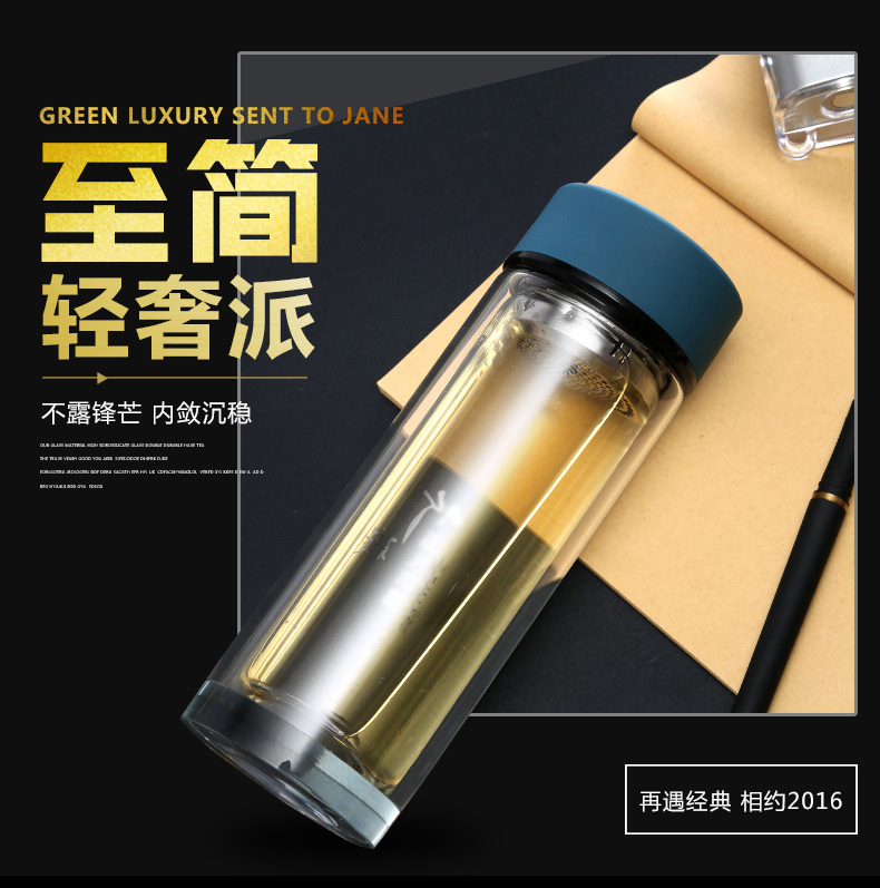 華潤(rùn)怡寶定做促銷(xiāo)透明水晶杯 茶水分離雙層便攜玻璃杯