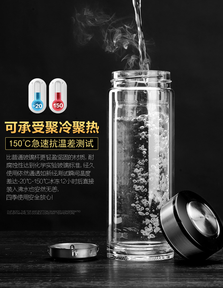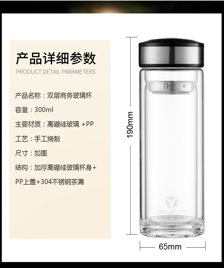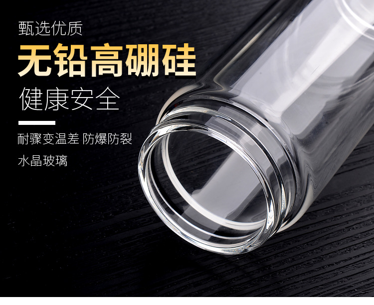 雙層厚底透明玻璃杯商務(wù)禮品高硼硅水杯廣告杯批發(fā)定制logo