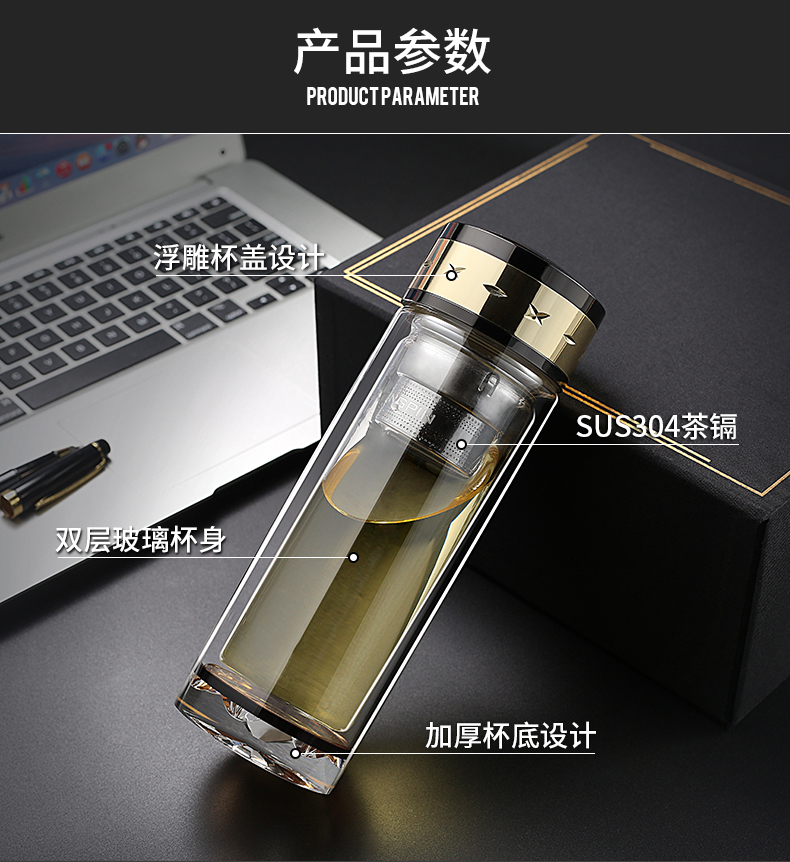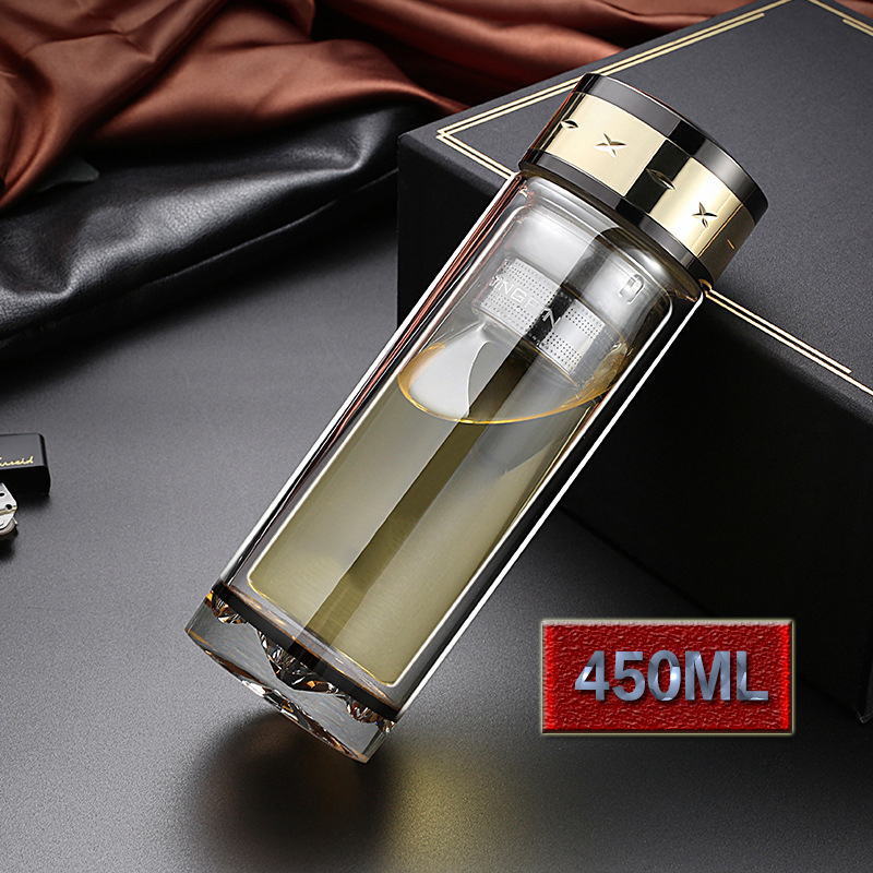 水晶雙層玻璃杯商務辦公便攜泡茶男女泡茶大容量LOGO