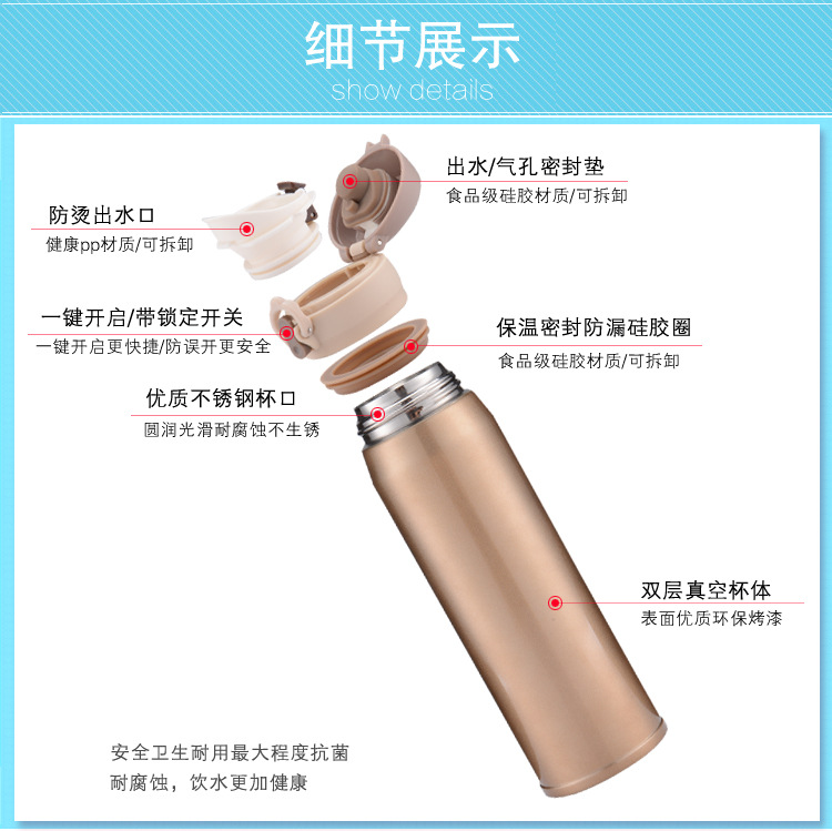 廠家直銷新款彈跳雙層不銹鋼保溫杯 直飲隨身杯 辦公車載杯刻字杯