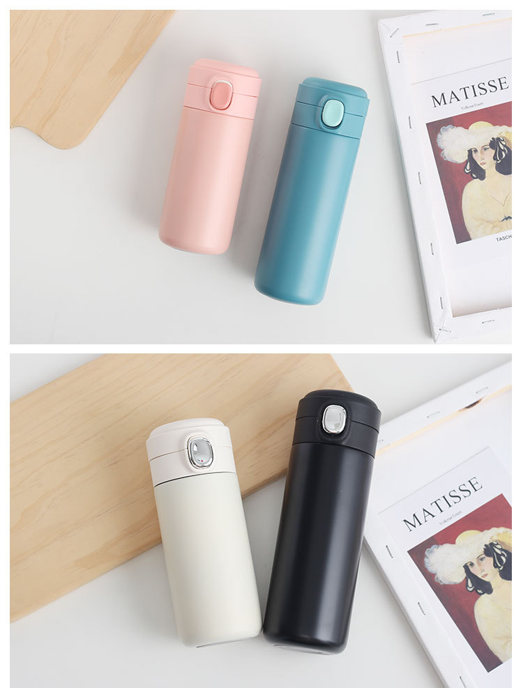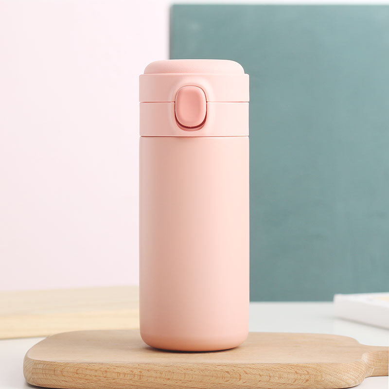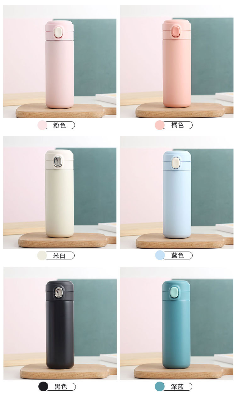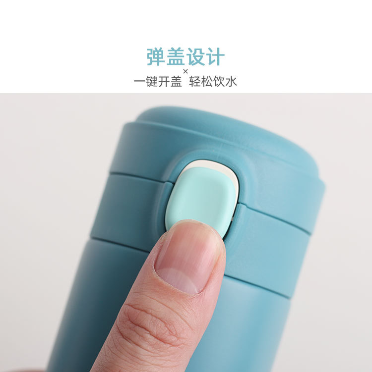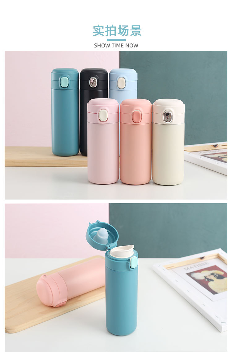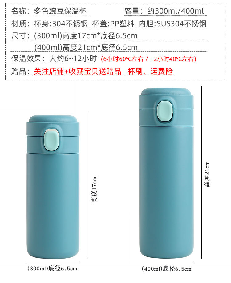 新款彈跳鎖扣不銹鋼真空雙層保溫杯豌豆杯子禮品定制水杯批發
