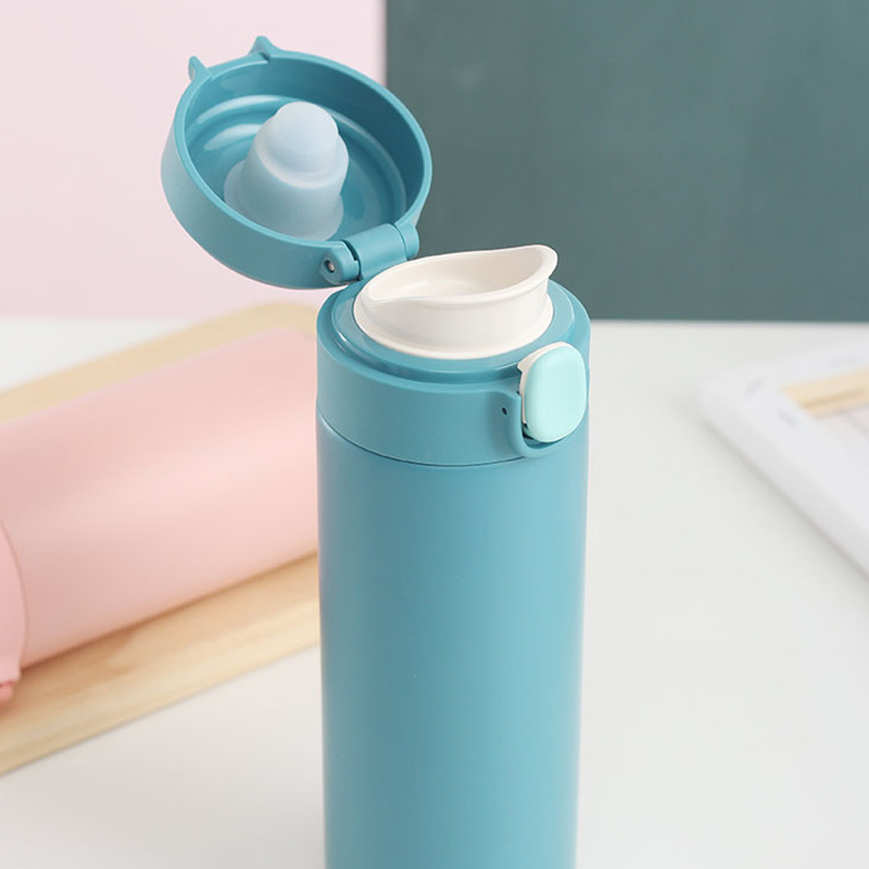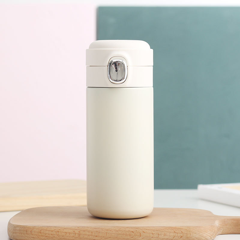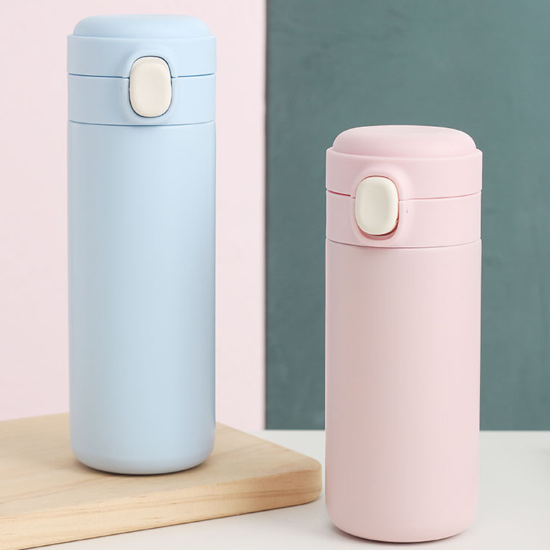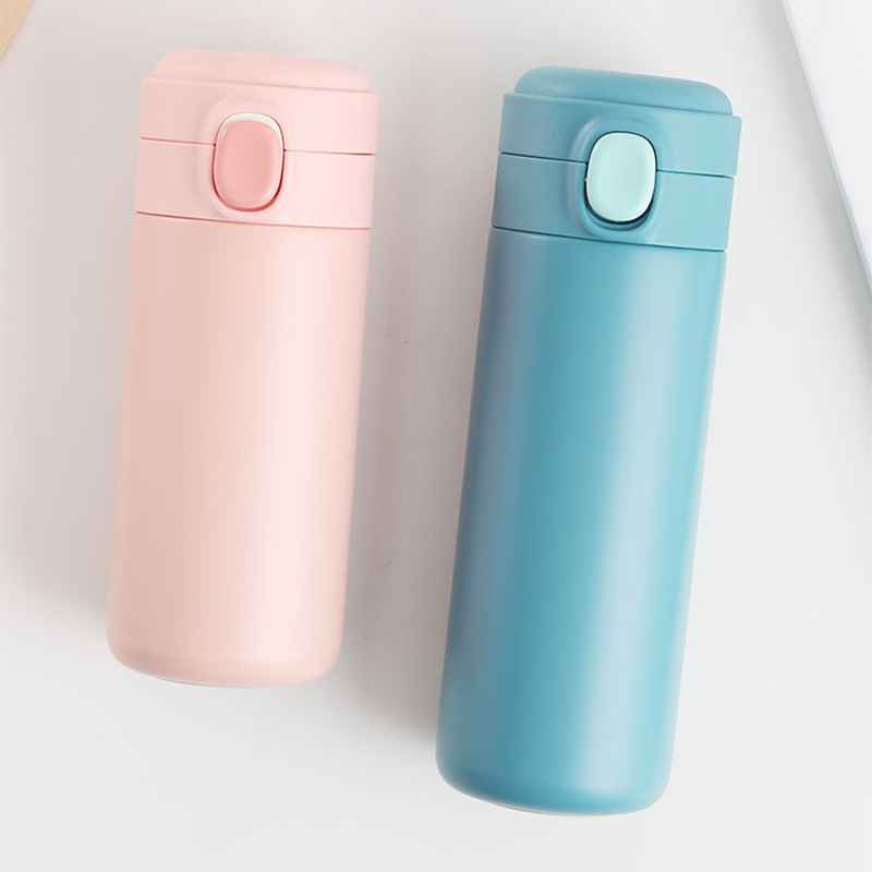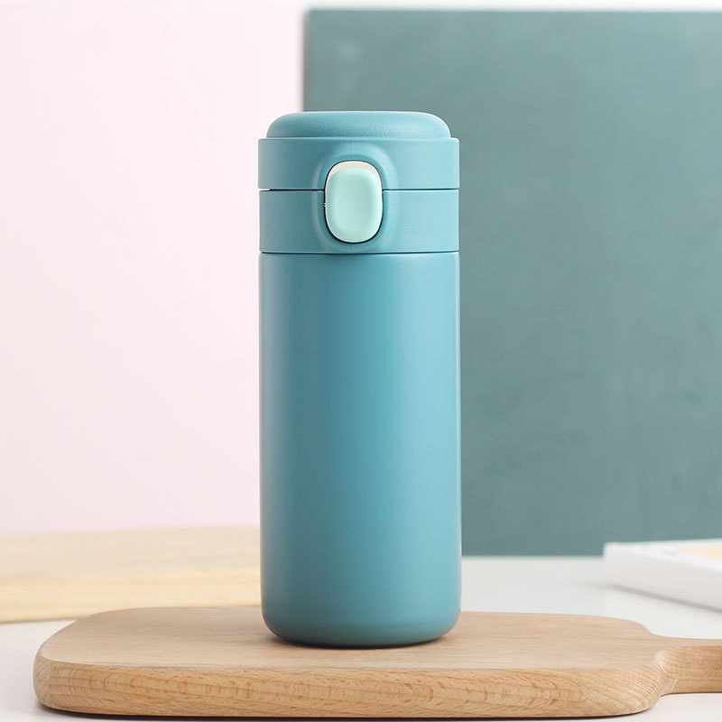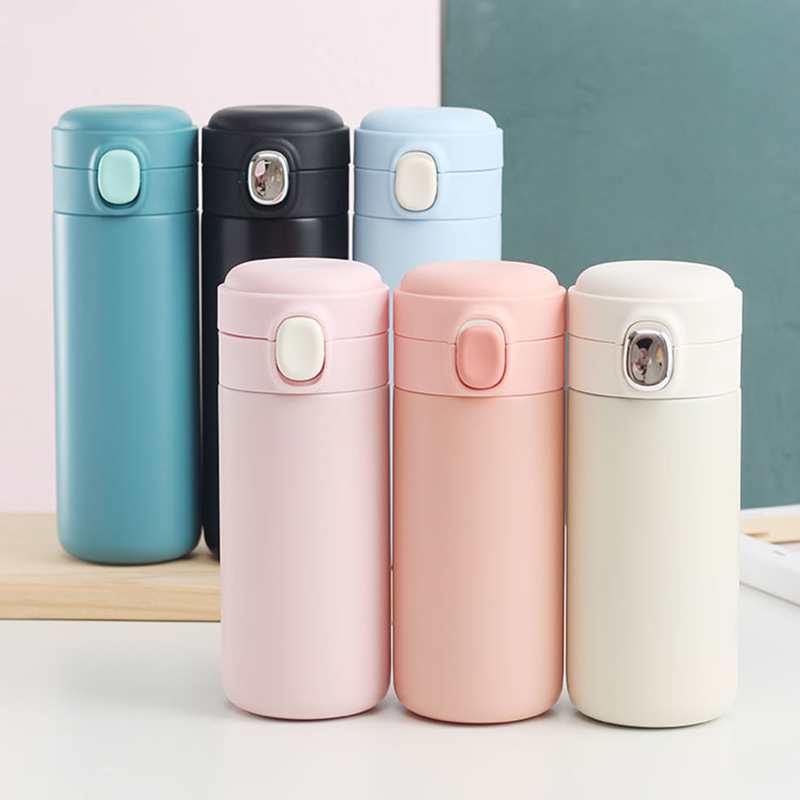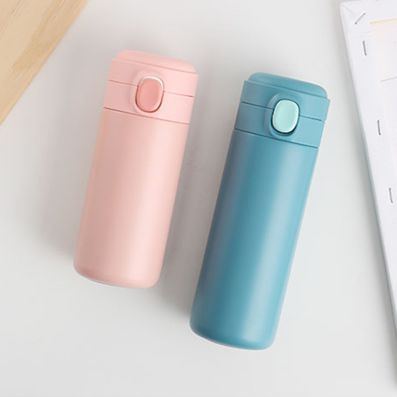 新款彈跳鎖扣不銹鋼真空雙層保溫杯豌豆杯子禮品定制水杯批發