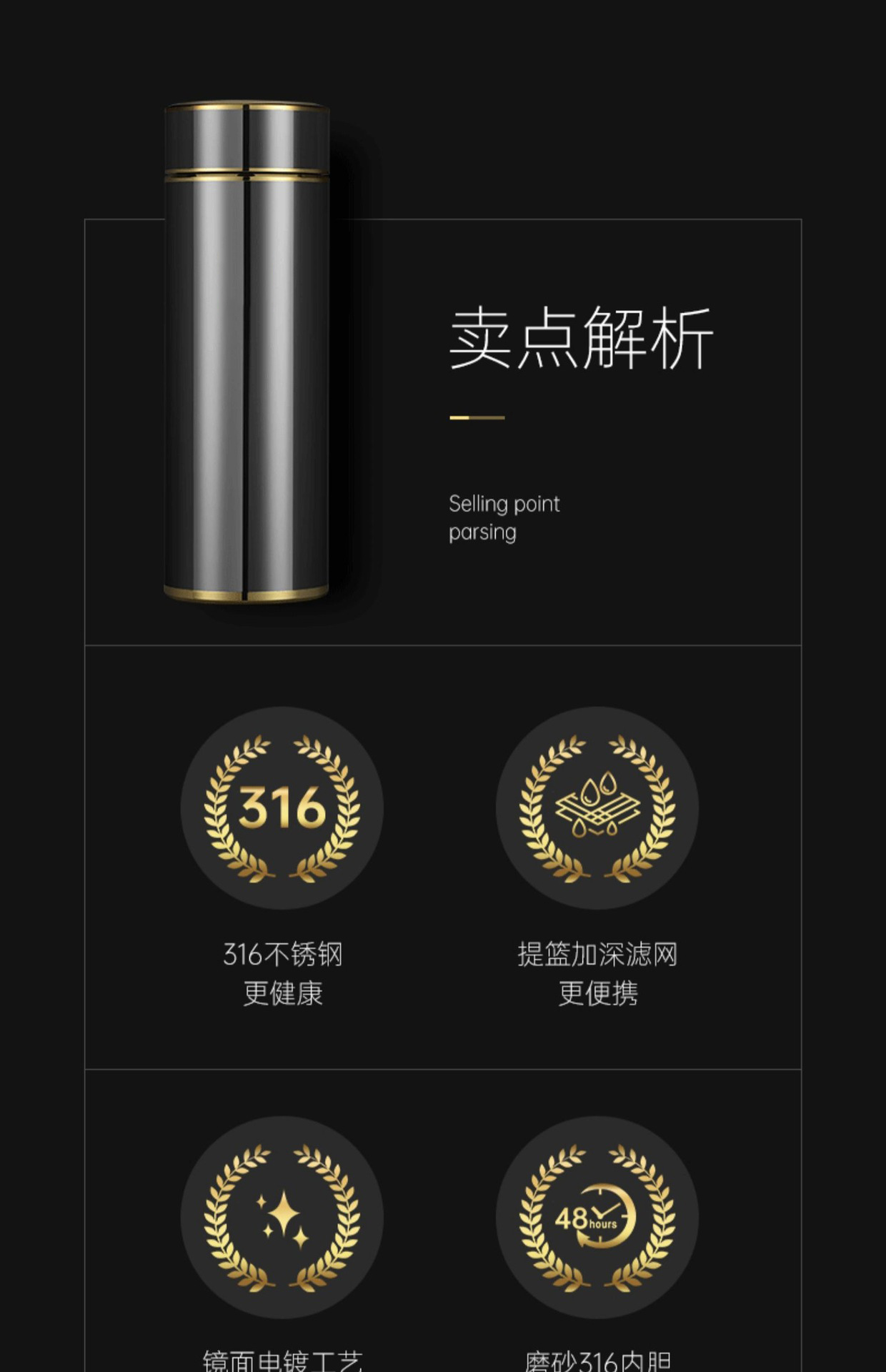 316不銹鋼電鍍高檔保溫杯