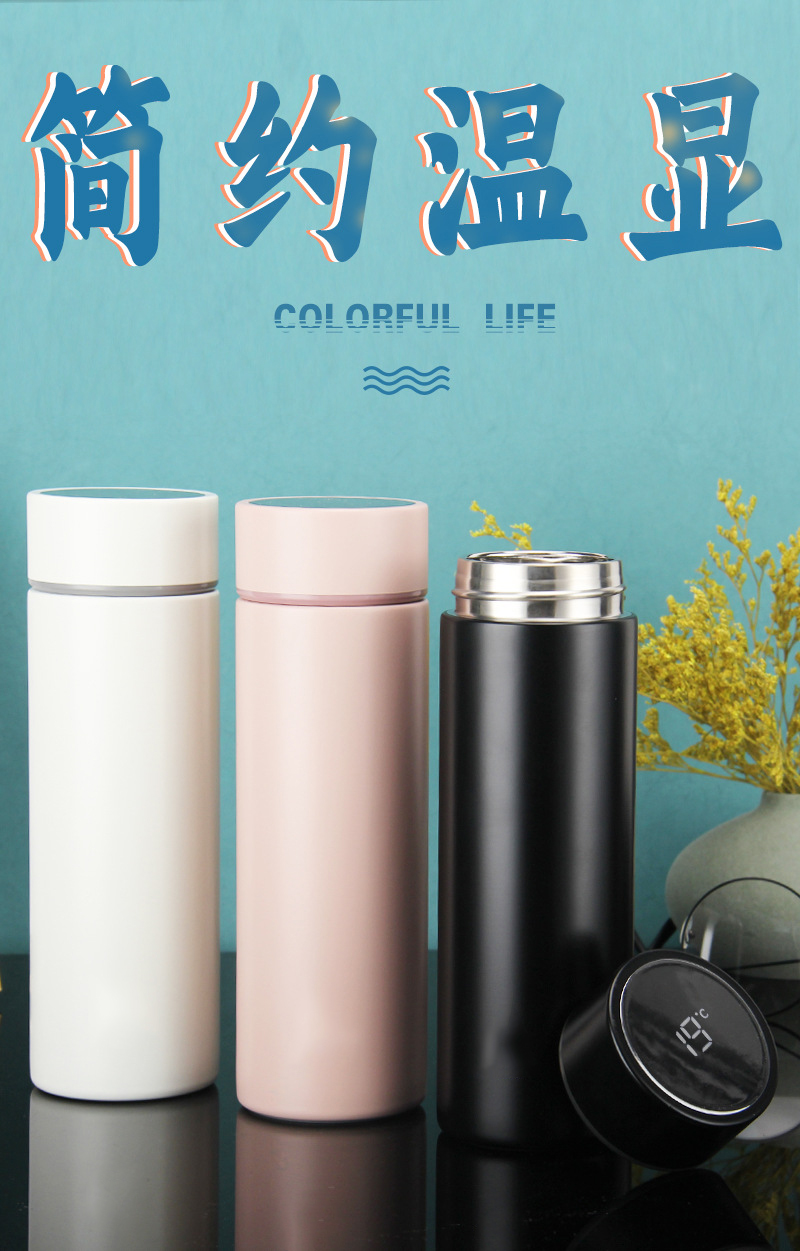 高真空旋薄鏡面內膽316材質溫度顯示保溫杯同學禮品水杯