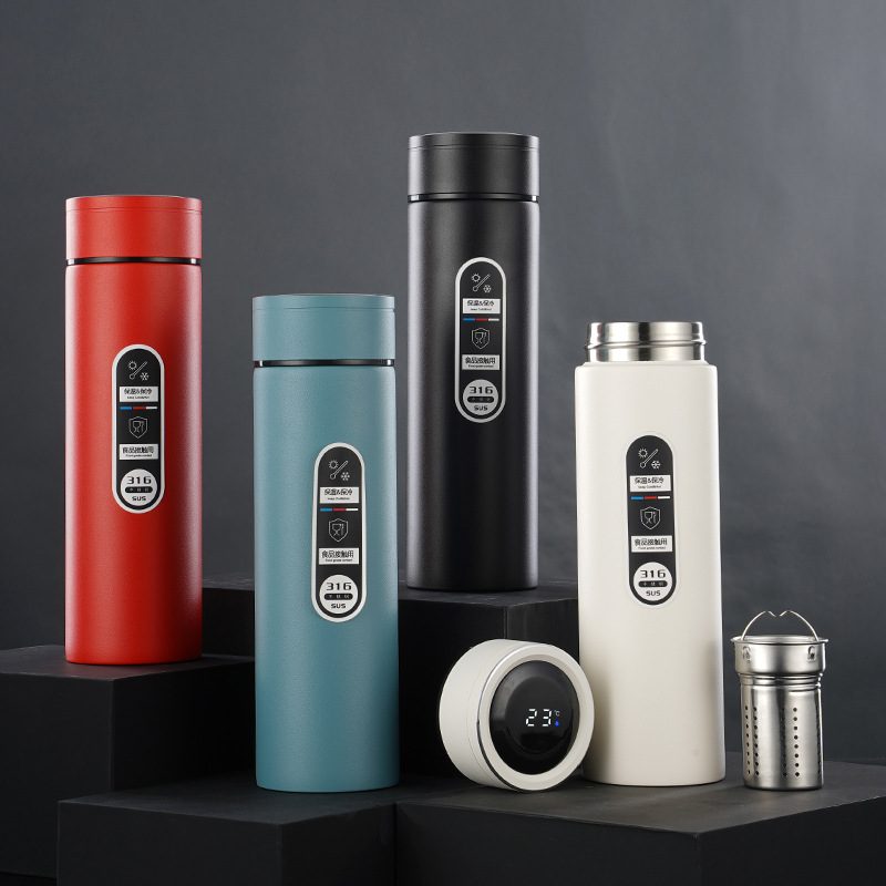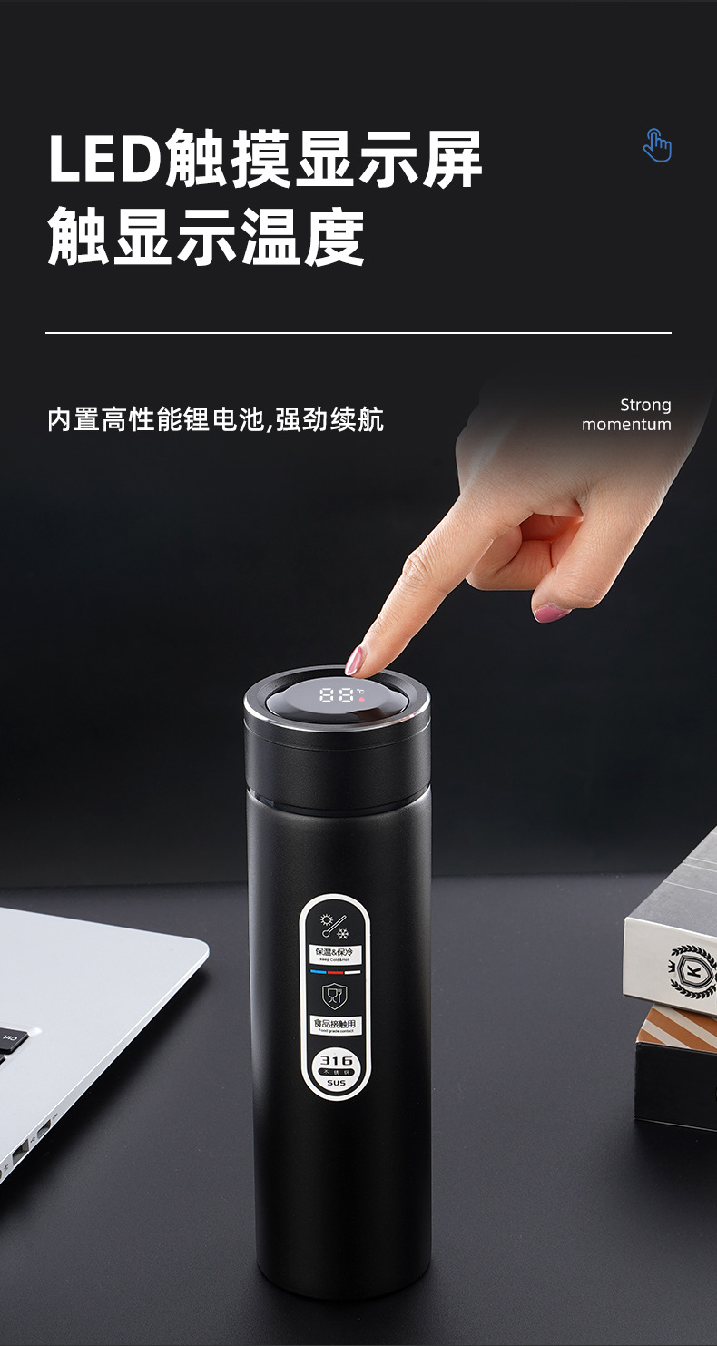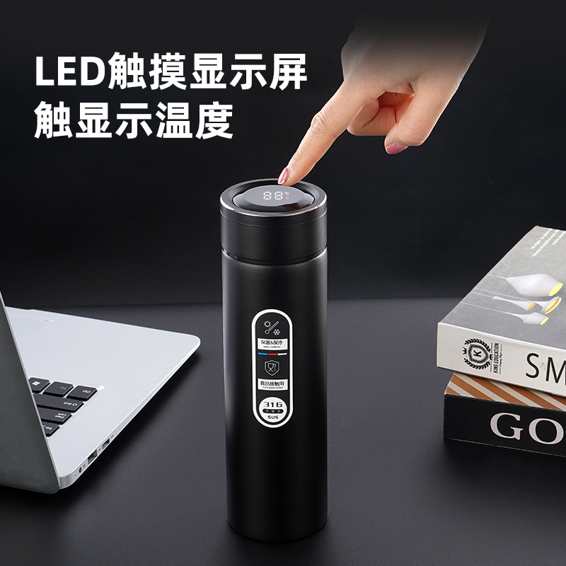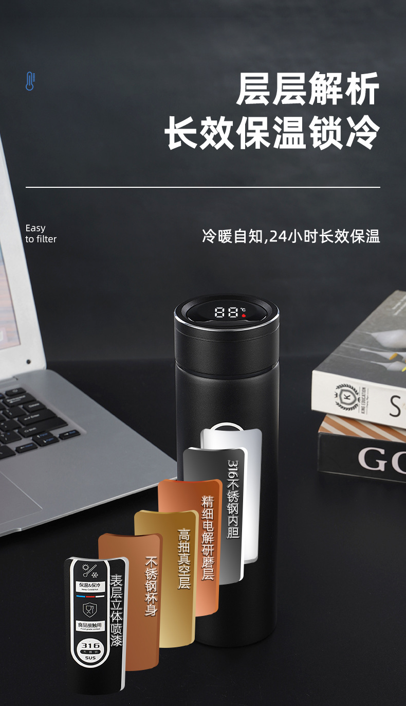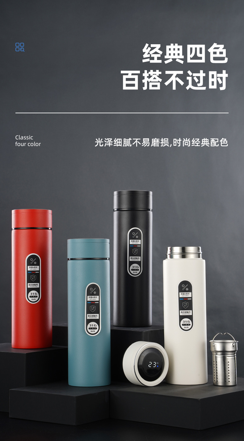316不銹鋼噴塑智能保溫杯男女士辦公水杯泡茶杯車載商務(wù)禮品