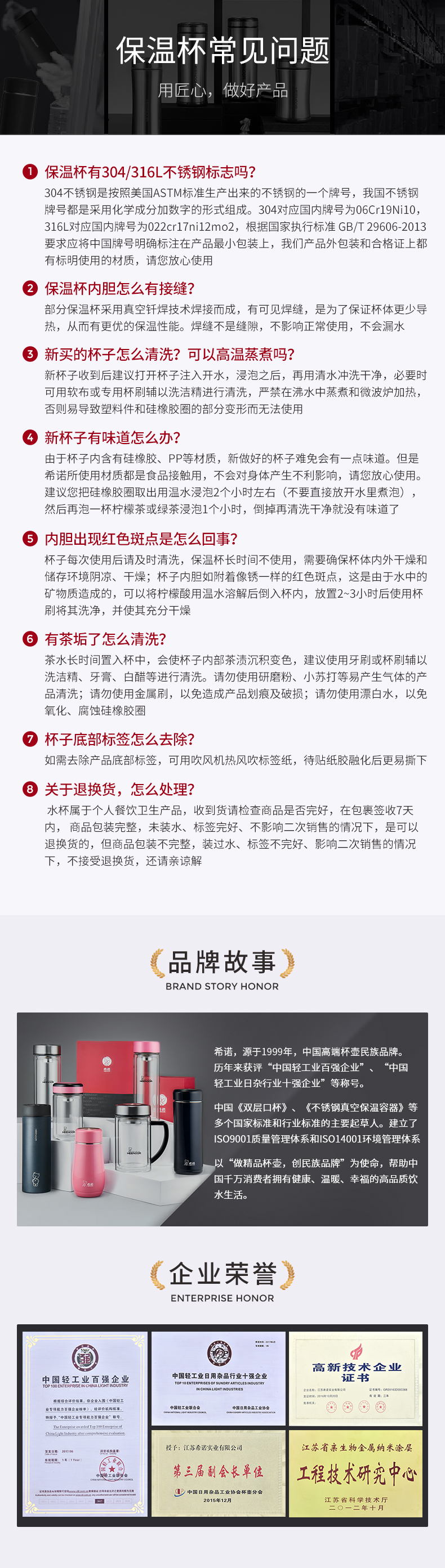 希諾保溫杯商務(wù)濾網(wǎng)泡茶杯子男女士便攜定制商務(wù)304不銹鋼水杯