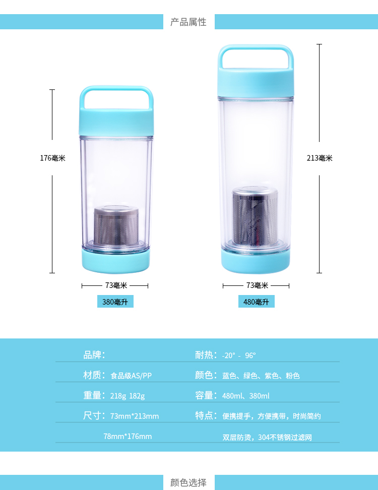 水杯大容量戶外運動水壺 塑料杯子 隨手杯 學生杯子 創意便攜防漏水杯 天藍色 650mL-800ml